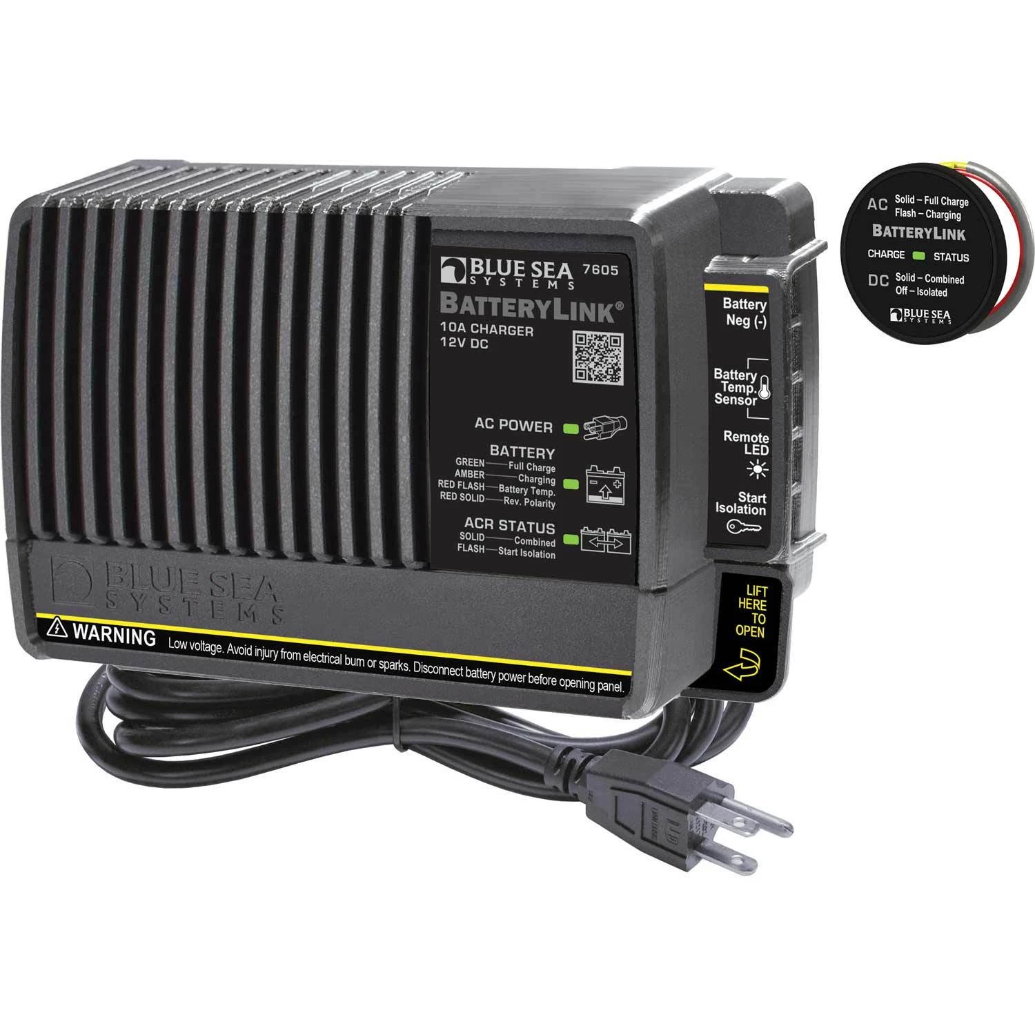 The BatteryLink® Charger is a 120VAC/230VAC nominal input, 12VDC nominal output, 10A battery charger with integral battery combiner (ACR) providing a second battery connection, as well as standard ACR function when AC power is not present.