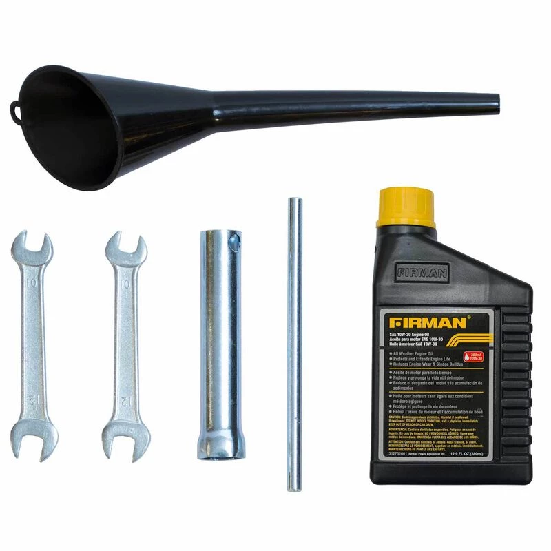 Everything you need comes standard in the box including: oil, funnel, owner’s manual and, spark plug wrench.