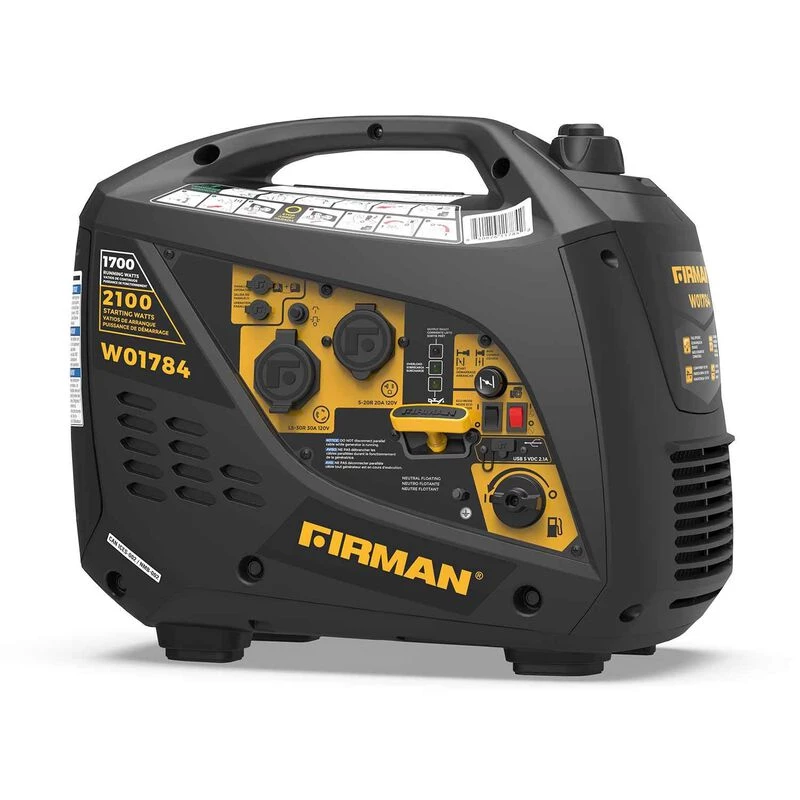 The FIRMAN W01784 Inverter generator features 2100 starting watts and 1700 running watts. The Whisper Series muffler keeps the W01784 running a quiet 54dB – well below National Park standards and is equipped with ECO mode to vary the power load needed to maximize fuel efficiency.