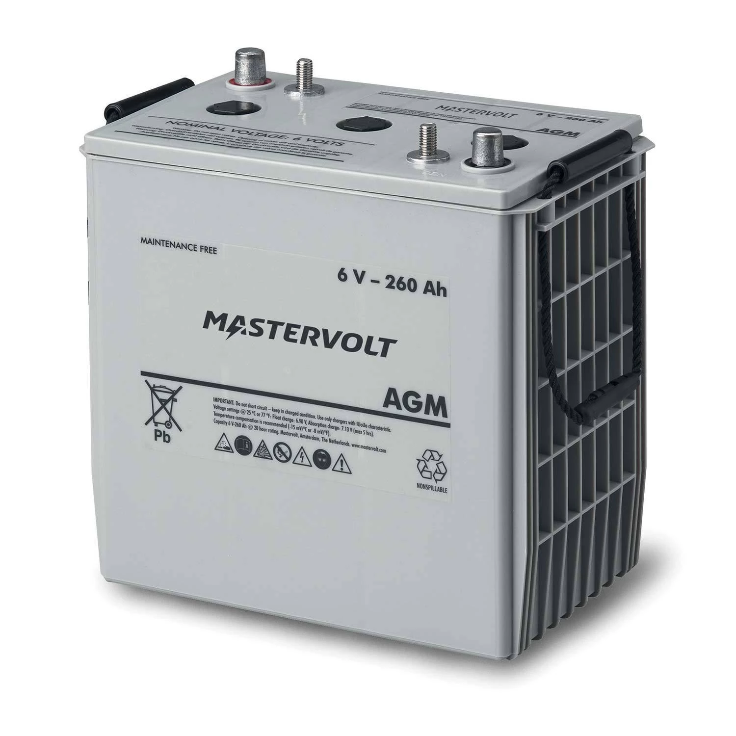 Mastervolt AGM batteries stand apart from other AGMās in their long lifespan, variety of configurations and adaptability. They are a great all-purpose battery. The ability to deliver high bursts of power make them suitable for starting applications. Their high tolerance for cycling make them suitable for house bank applications. The posts can be removed and configured to match existing cabling by changing the terminas (not included); eliminating additional wiring. Mastervolt AGM batteries are available in conventional group sizes with various ratings so there is one available to fit your needs. Upgrade to an AGM battery and increase the versatility of your DC system.