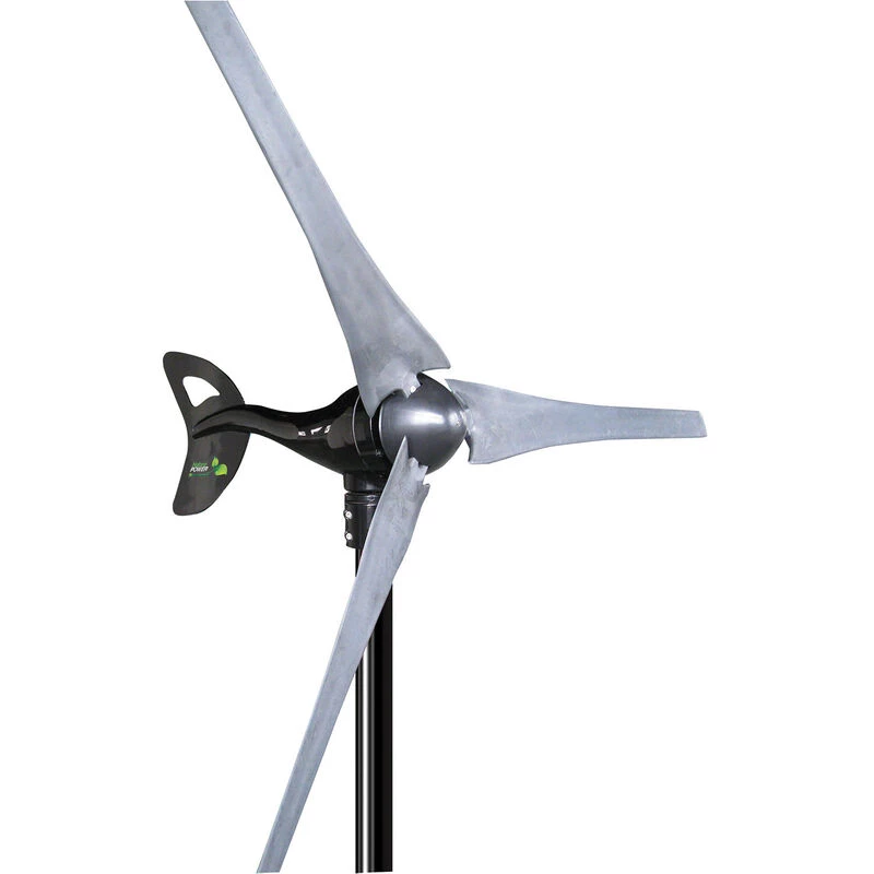 Maintenance-free design features an industrial strength die-cast aluminum body with carbon fiber composite blades that are engineered for low-noise operation. Maximum power is reached at 28 mph wind speed.