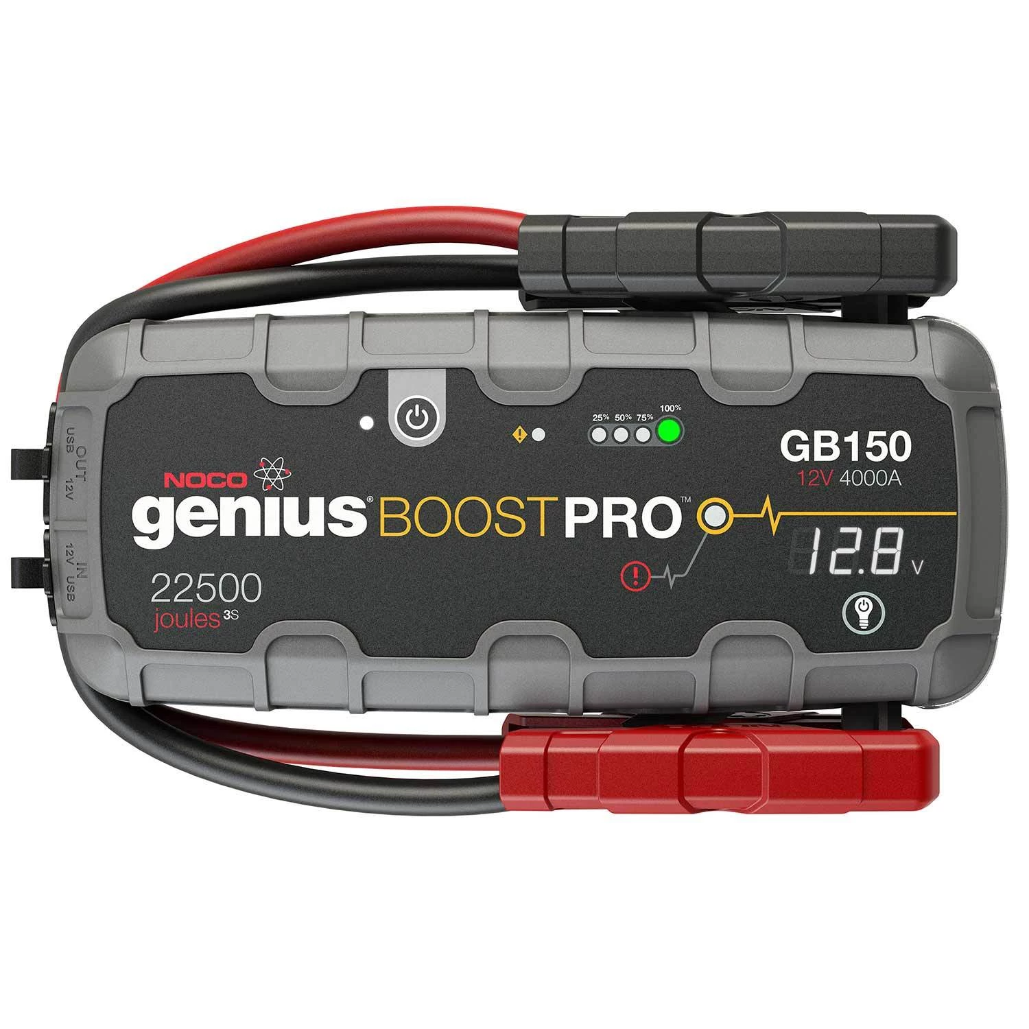 Noco’s portable Genius Boost Pro GB150 UltraSafe Lithium Jump Starter delivers 4,000 amps for jump-starting a dead battery in seconds.